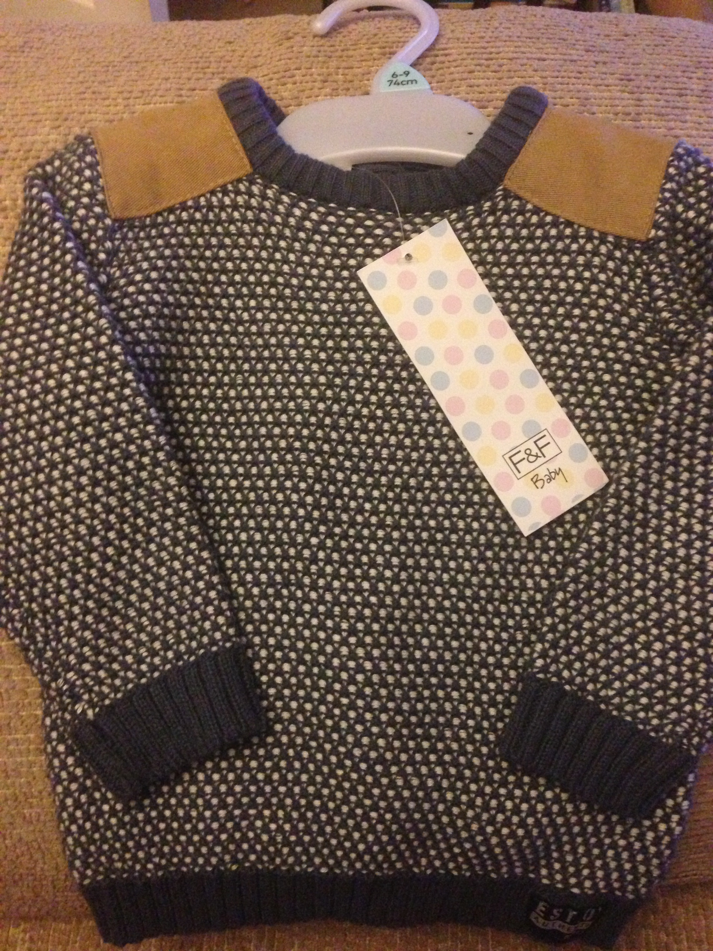 They have some lovely baby boy clothes in Tesco at the moment, I think I will go back for more stuff as and when we need it, but I couldn’t resist buying these items yesterday – a cool long-sleeved T-shirt for £4 and a GORGEOUS jumper for £9 – I want to wear that jumper myself! The detail and quality is fab and am sure it would cost about £30 at places like Next!