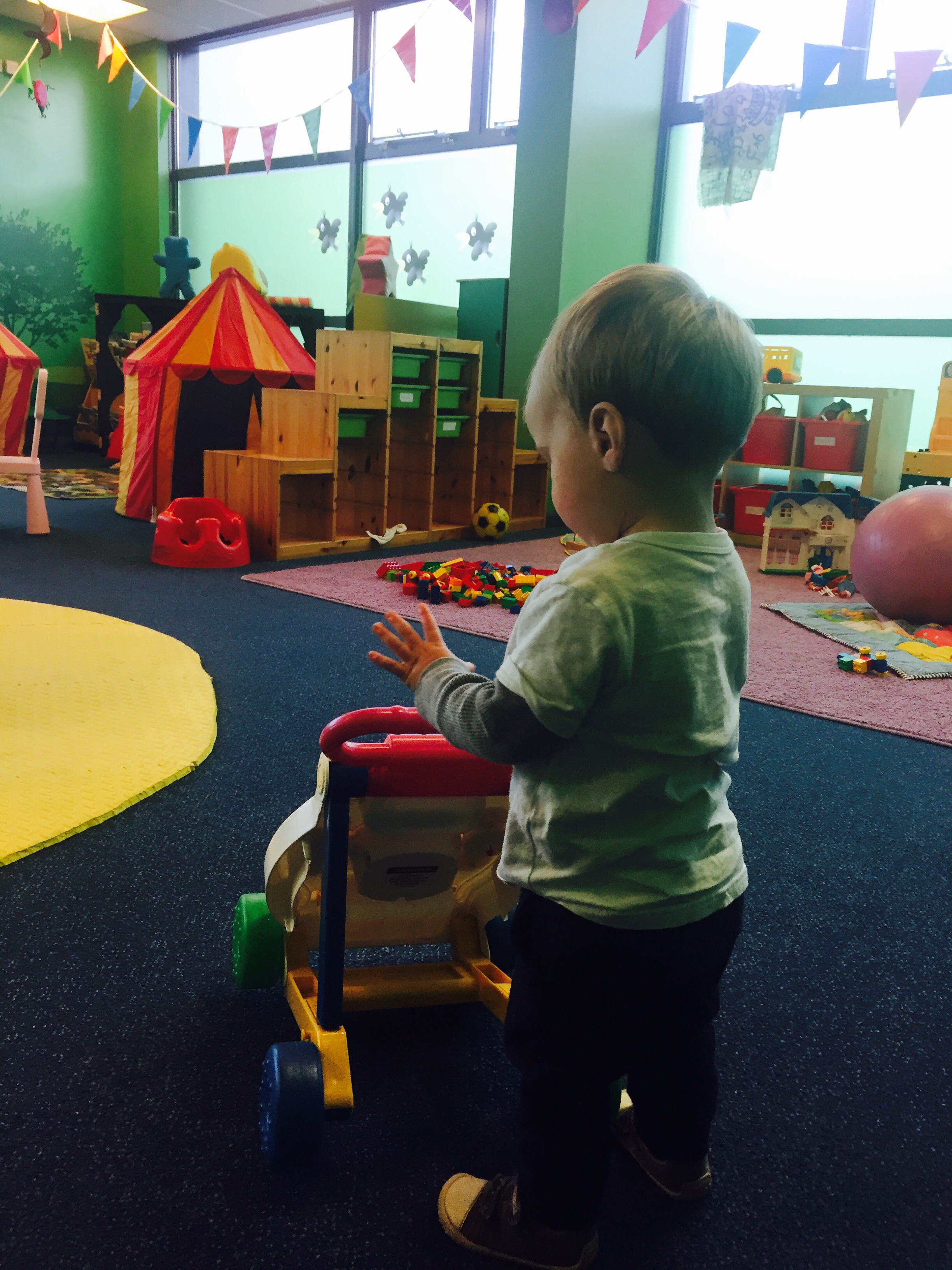 The health visitor came to do a home visit to check in on him, first time we’d seen her in a year! She was very happy with his progress as he was babbling away to her and trying to share his toys with her!
