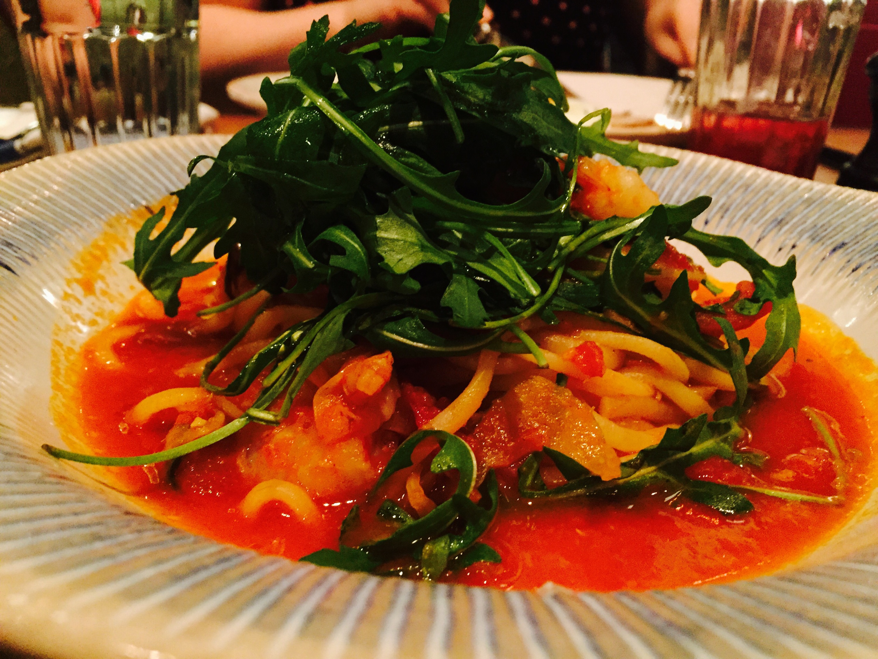 Then it was time for the main course, I chose the ‘famous prawn linguine’ (£13.50) and again this was delicious, great egg pasta (made daily on the premises) and lovely flavours of prawn, garlic, chilli, tomato, saffron, fennel and lemony rocket… None of which overpowered each other, it was actually very soothing (comfort food!) Yum!