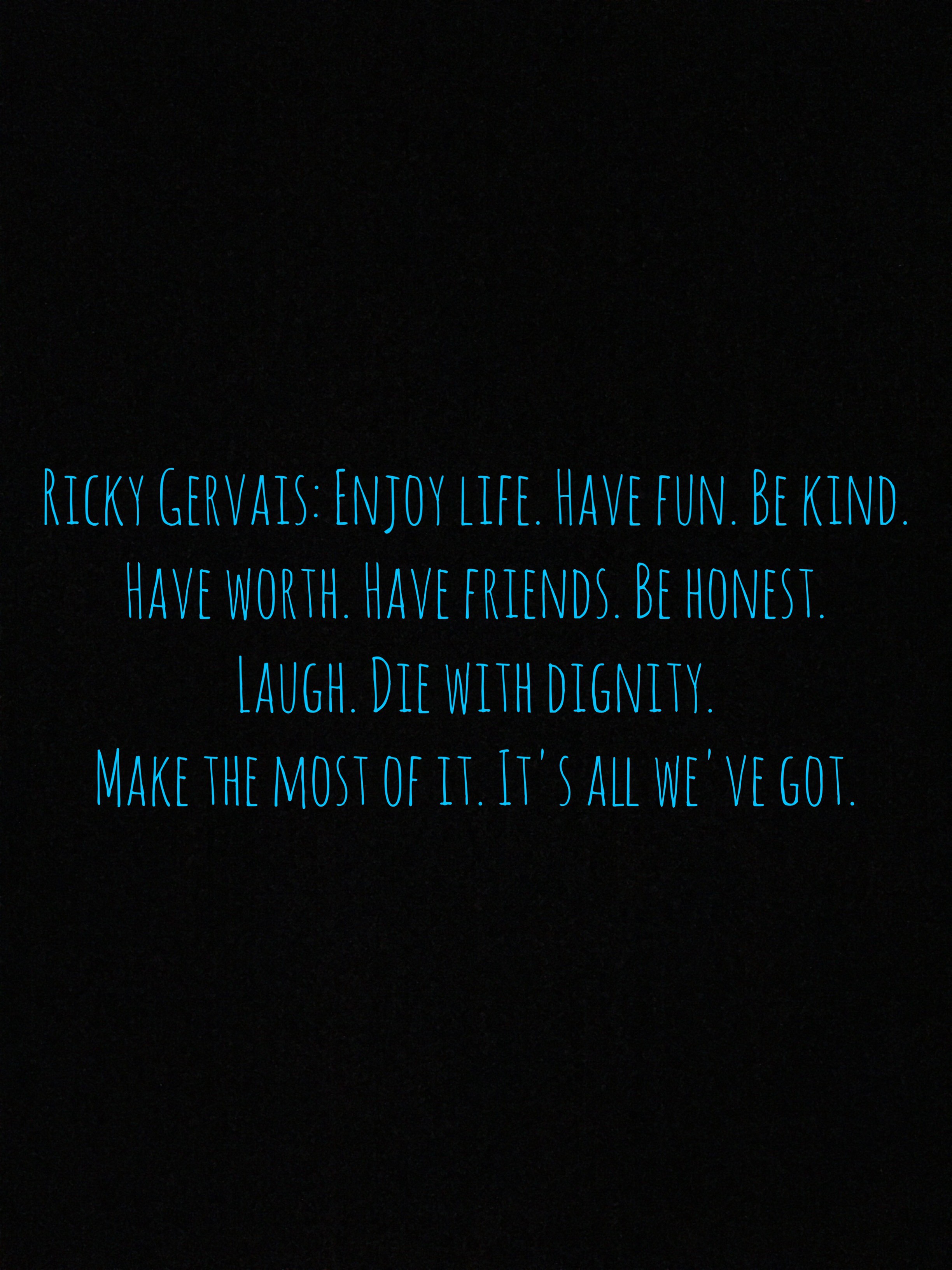 I’ll let Ricky Gervais have the last word. It sums up how we should lead our lives even if feels easier said than done at times. At least it’s something to aim towards.