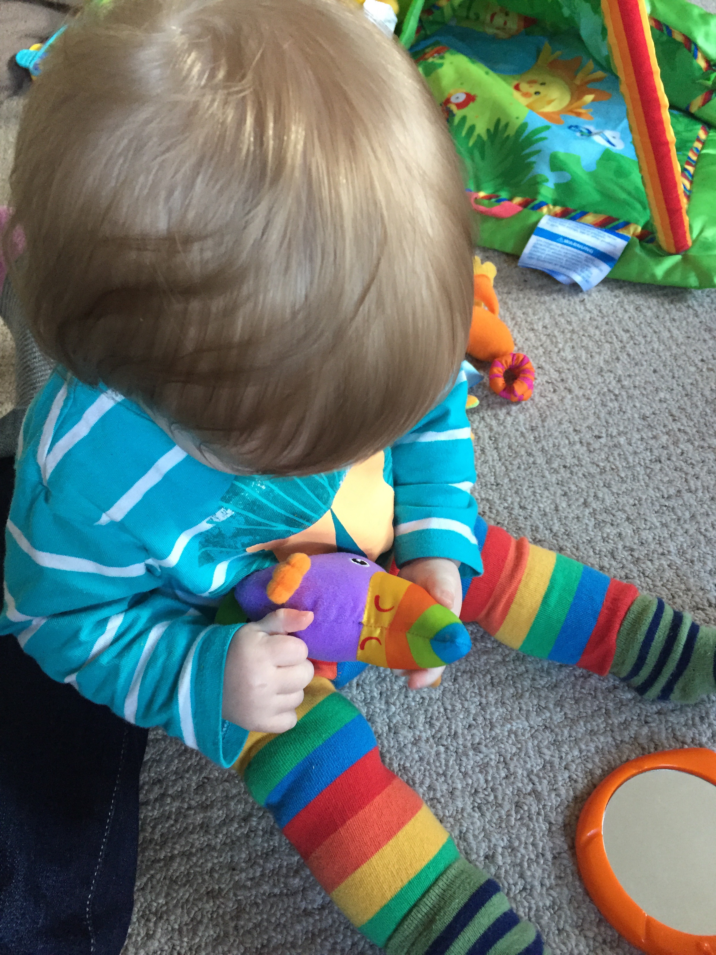 He loves it, just sitting on the floor surrounded by toys (and of course his favourites are remote controls and mama’s phone!).