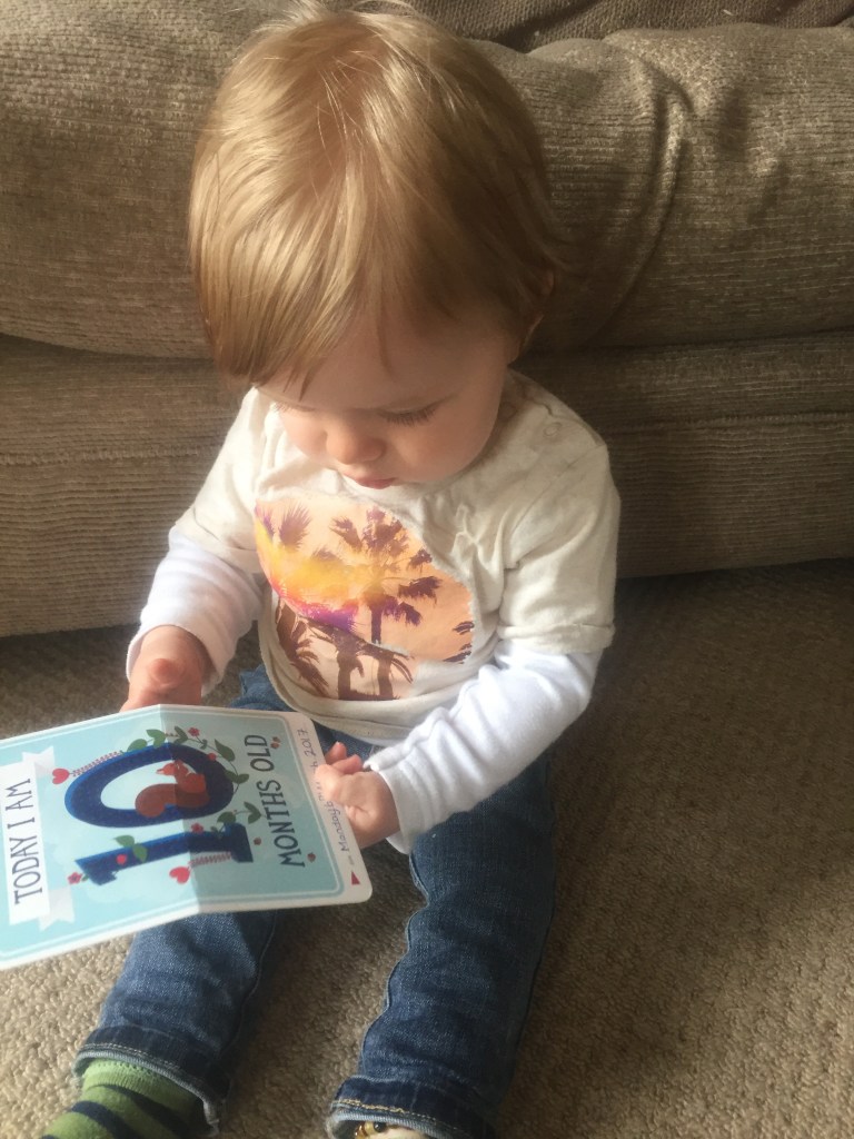 Despite all the recent teething symptoms, he still has only 4 teeth which he’s had for months. His hair is getting pretty long now, it’s still very fine – looks like a proper indie hair cut!