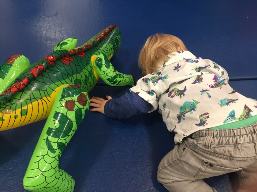 Book… like I said he’s not a huge fan of storytime but Santa bought him Julia donaldson’s ‘monkey puzzle’ which he’s loving at the moment. He makes monkey and elephant noises when he sees them 🙂