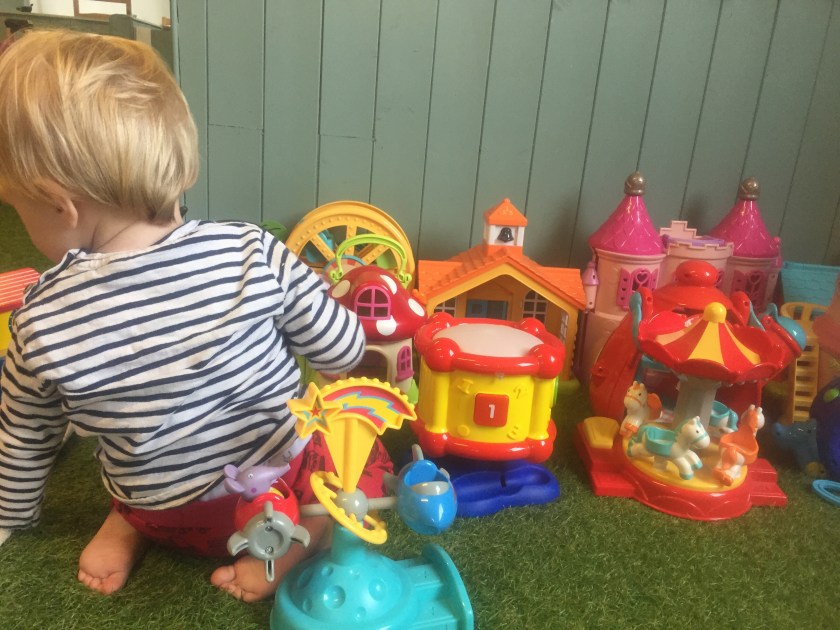 He doesn’t sit still, always on the move. Switching stuff off. Throwing stuff! When o take them both to softplay, he’s fearless… off he goes!